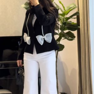 2,890,000 تومان0 از 5کت کرپ پاپیون پارچه کرپ مرویجت گرم بالا تک رنگ مشکی قد کت 60 کاملا استر کشی شده سایز یک 36 الی 40 دورسینه تا 100 سانتی متر سایز دو 42الی 44 دورسینه تا 112 سانتی متر جنس دیتیل روی کت مروارید برجسته و پاپیون حریر هست