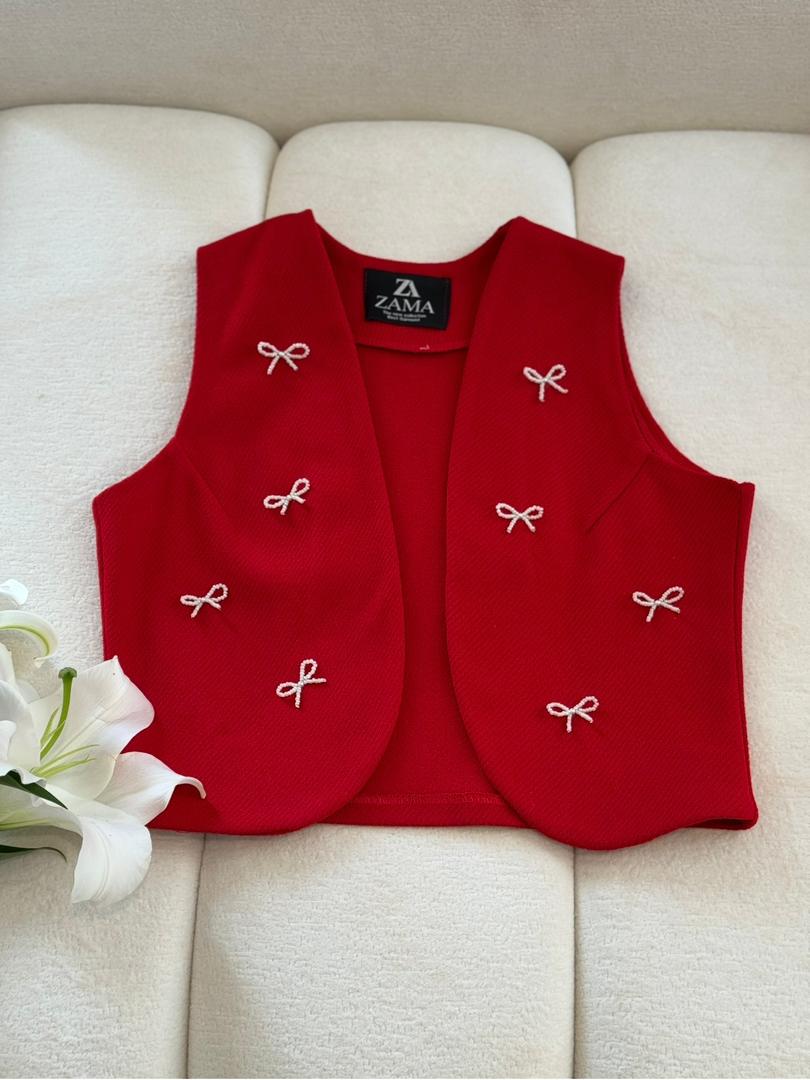 پاپیون های روی جلیقه برجسته و از جنس مرواریدی هستن
