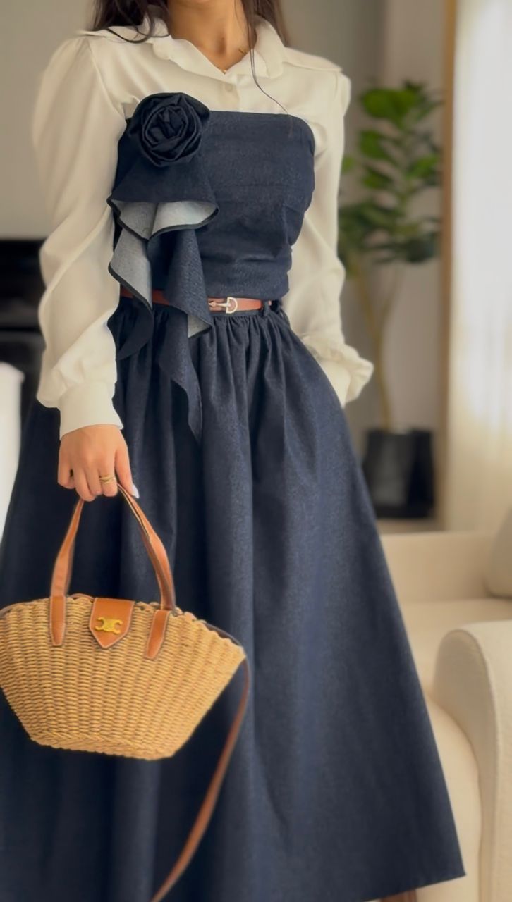 پارچه دامن و کراپ از جنس جین گرم بالا